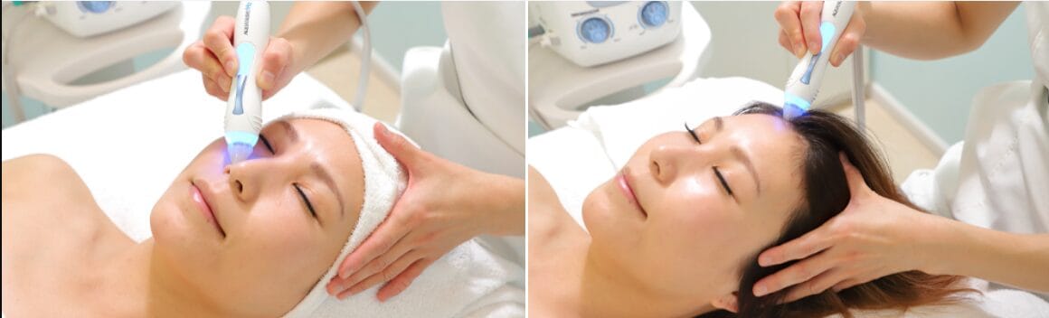 高濃度の水素水を使用して、渦巻き状のトルネード水流と、ガルバニック電流で毛穴を開き、毛穴の奥までしっかりクレンジングしていきます。